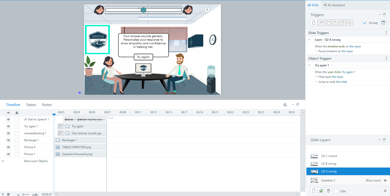 The result was a cohesive, immersive simulation built entirely in Articulate Storyline.