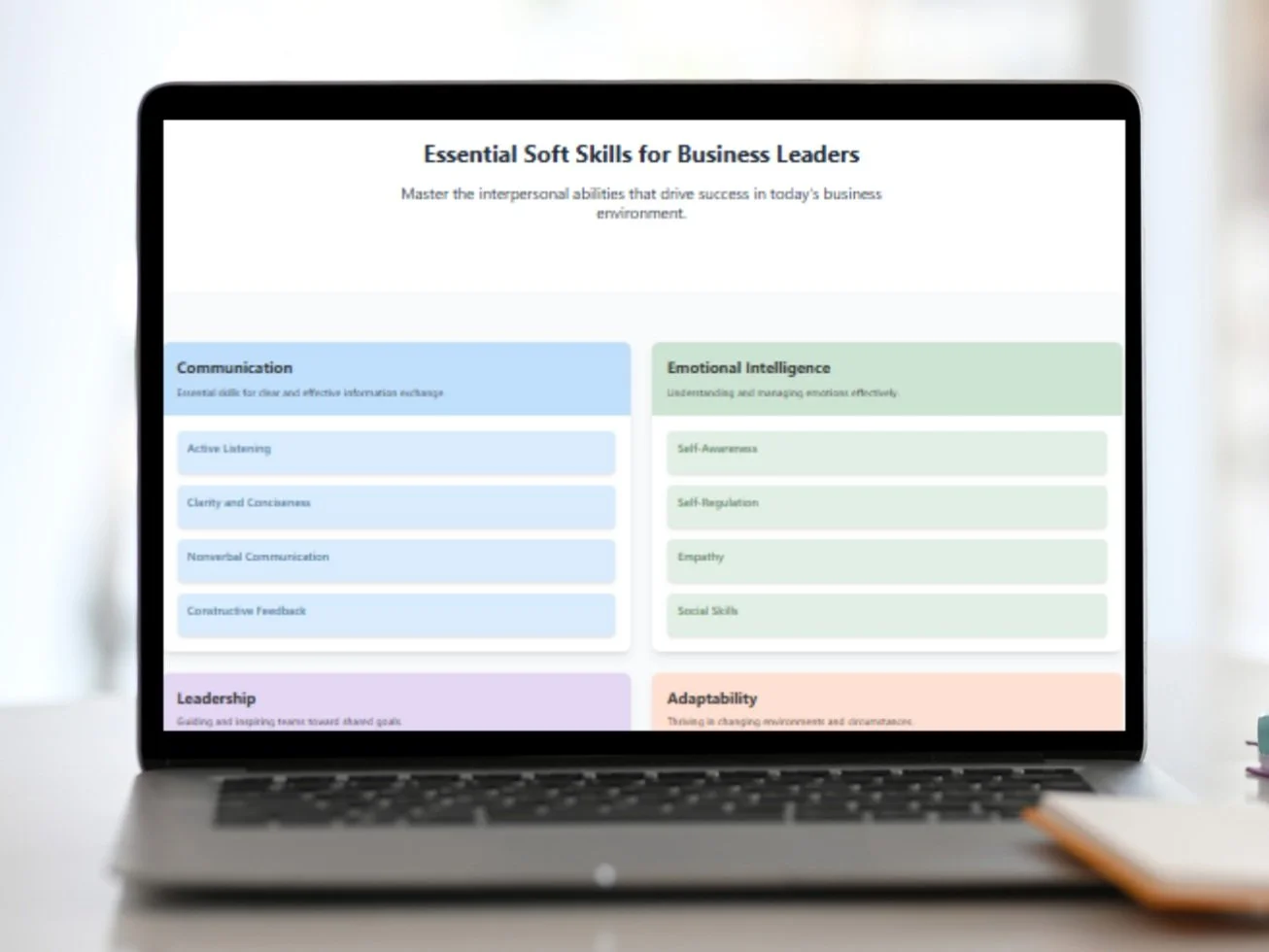 This simple, web-based resource highlights six essential soft skill categories: communication, emotional intelligence, leadership, adaptability, problem solving, and teamwork. Each category contains four terms. When selected, a pop-up appears with a short definition and a real-world example. Users can explore all terms at their own pace, using this guide as a practical tool for learning and reinforcement. Designed with a clean layout and straightforward navigation, the experience supports self-guided discovery on a foundational professional development topic.